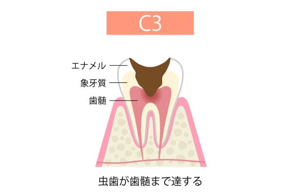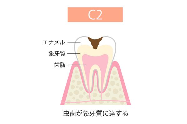 象牙質はエナメル質よりも柔らかく、内部に神経につながる小さな管(象牙細管)が多数存在するため、C1の段階と比べて虫歯の進行が格段に速くなります。