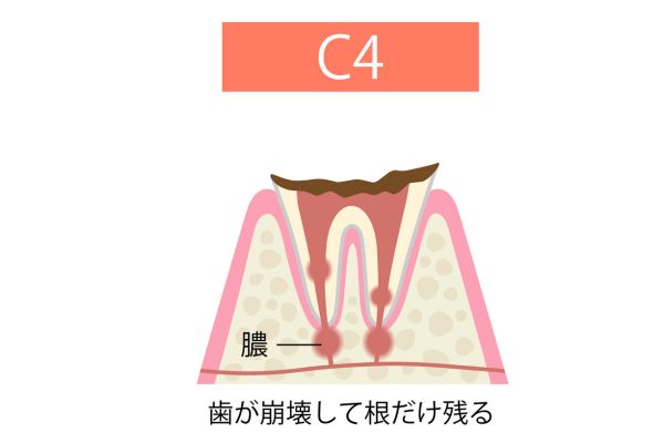 C4の状態になると、残念ながら歯を残すことは非常に困難になります。