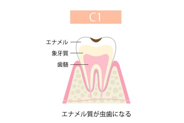 このC1の段階で治療を行えば、歯を削る範囲が最も少なく済み、ご自身の天然歯へのダメージを最小限に抑えることができます。